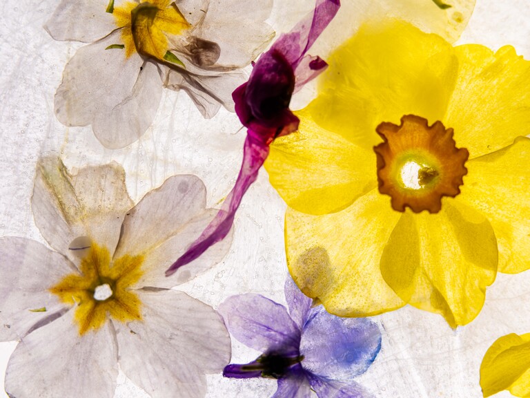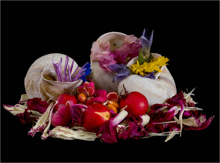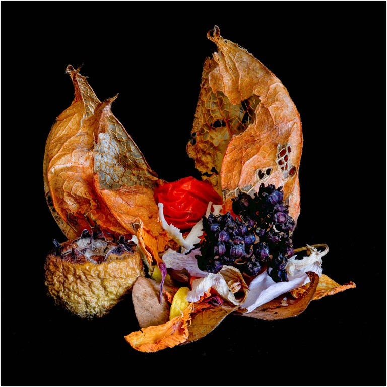 Inzwischen verwende ich verblühte Blumen, gefrorene Blumen, Samen etc. und fotografiere die meisten Bilder wieder zu Hause (nur mit Tageslicht).